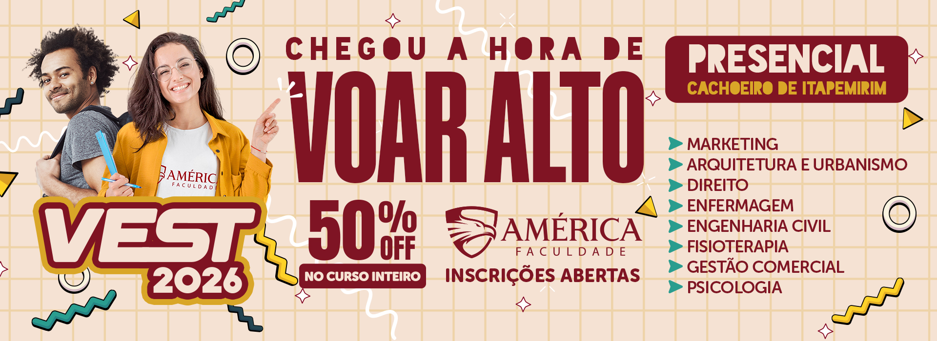 Escolher uma profissão é uma das decisões mais importantes da vida, mas você não precisa passar por esse momento sozinho. Pensando em apoiar quem está em dúvida sobre qual caminho seguir, a Faculdade América oferece o Teste de Carreira Gratuito.