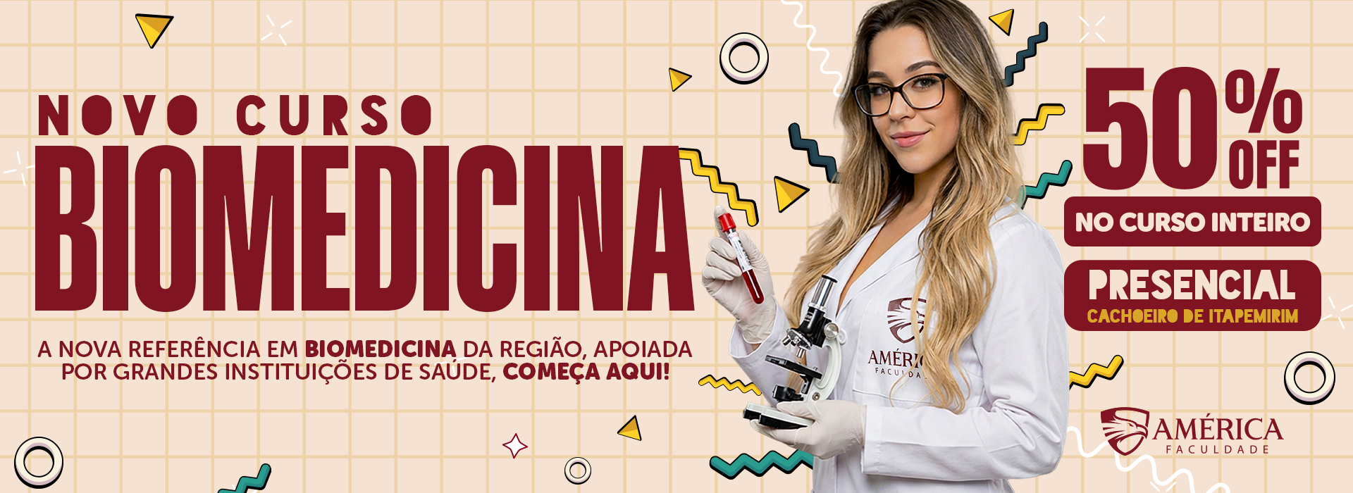 A Faculdade América possui um centro com estrutura ampla, moderna e de fácil acesso, situado em Cachoeiro de Itapemirim, umas das cidades que mais cresce no estado do Espírito Santo. Além da própria cidade de Cachoeiro a Faculdade América atende um grande público de diversas cidades e regiões ao seu redor. Estudar na Faculdade América é fazer parte de uma comunidade ampla e diversa. Por se tratar de um polo de educação, nossos alunos já iniciam a jornada acadêmica estabelecendo importantes contatos e criando uma vasta rede de networking, um excelente primeiro passo a construção do profissional no mercado.